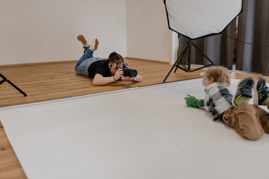Kein Druck, JETZT zu funktionieren oder stillzuhalten. Ich plane mir immer genug Zeit ein, damit dein Kind ganz in Ruhe ankommen und sich erst einmal wohlfühlen kann. Toben, Springen, Spielen, Lachen, von der Kamera wegschauen – alles gehört dazu und bringt Lebendigkeit in eure Fotos anstelle von gestelltem „bitte jetzt mal kurz lachen und mitmachen“.