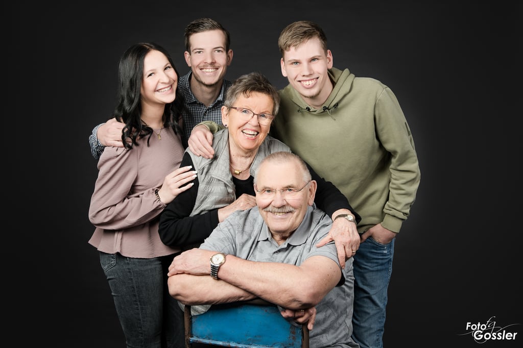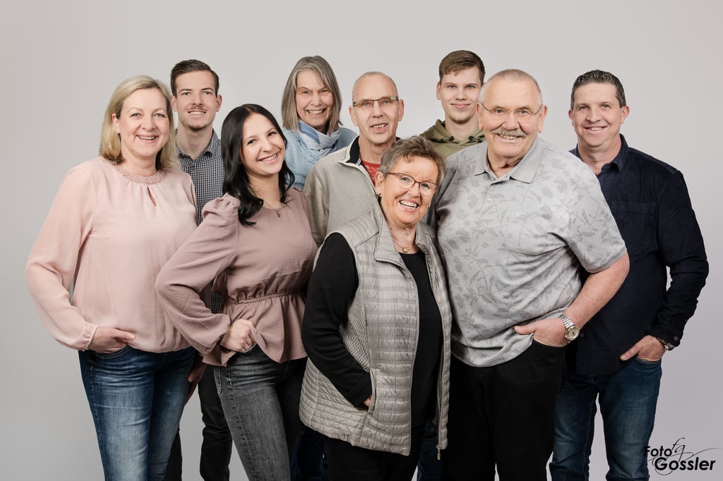 Bei Fotoshootings fotografiere ich selten nur alle gemeinsam. Je mehr Leute ihr seid, desto unterschiedlicher die möglichen Konstellationen. Natürlich halte ich euch als gesamte Gruppe fest, aber auch mal nur Kinder, Oma mit Enkeln oder euch Eltern.